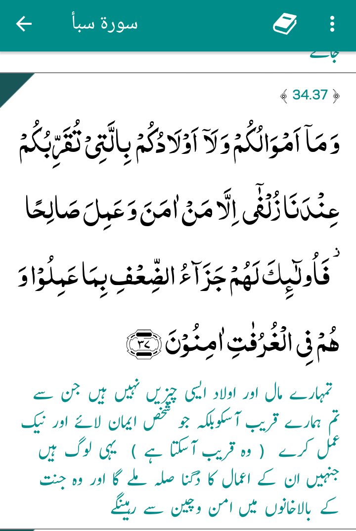 تمہارے مال اور اولاد ایسی چیزیں نہیں ہیں جن سے تم ہمارے قریب آسکوبلکہ جو شخص ایمان لائے اور نیک عمل کرے ( وہ قریب آسکتا ہے ) یہی لوگ ہیں جنہیں ان کے اعمال کا دُگنا صلہ ملے گا اور وہ جنت کے بالاخانوں میں امن وچین سے رہینگے.pic.twitter.com/TBWEmmEMcE